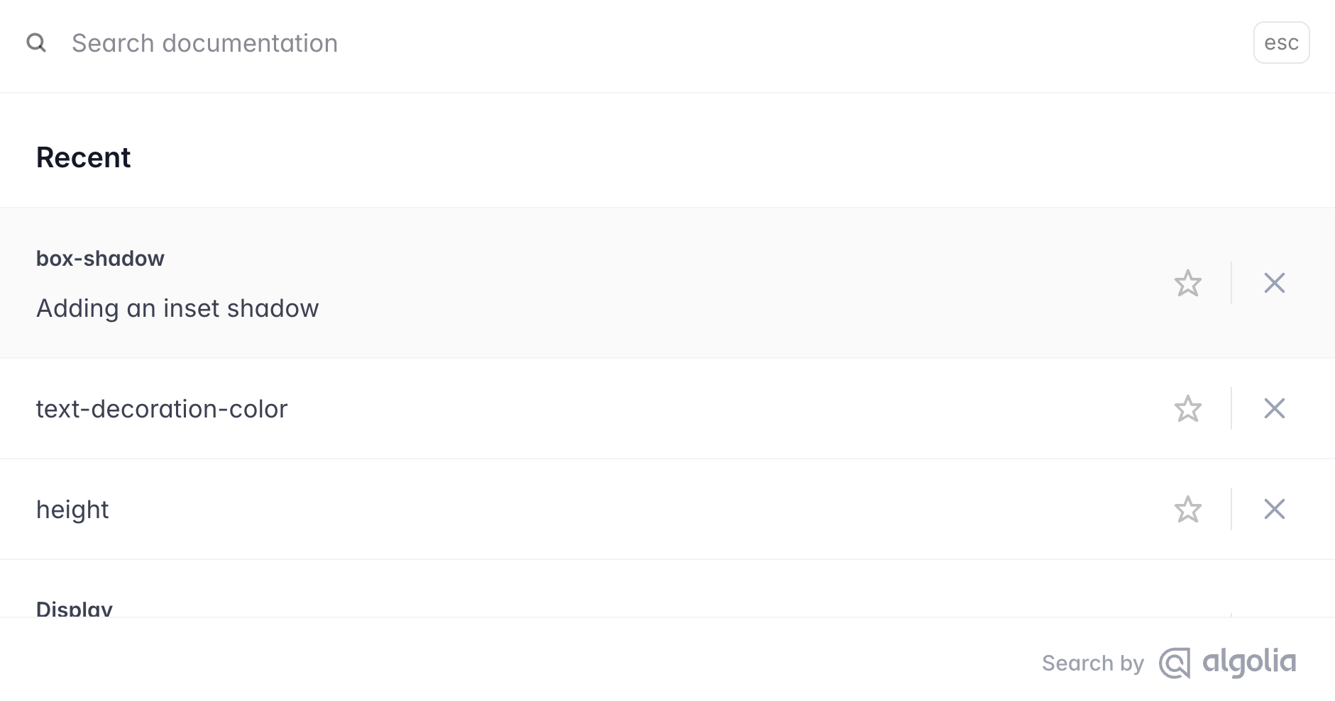 Tailor DocSearch to match your brand and UX needs—colors, fonts, layouts, and even search behaviors are under your control. Drop-in CSS variables and simple JS hooks make it effortless to blend search seamlessly into any docs site.