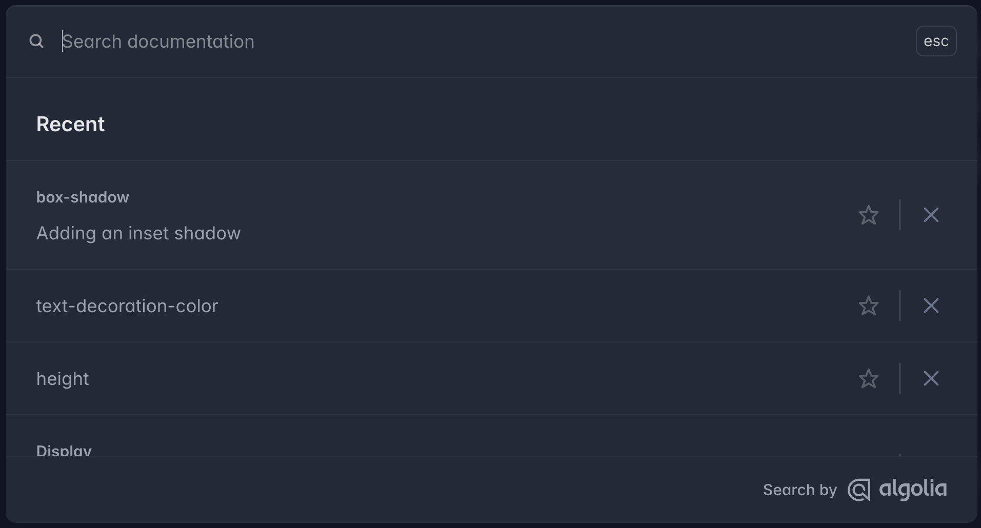 Tailor DocSearch to match your brand and UX needs—colors, fonts, layouts, and even search behaviors are under your control. Drop-in CSS variables and simple JS hooks make it effortless to blend search seamlessly into any docs site.